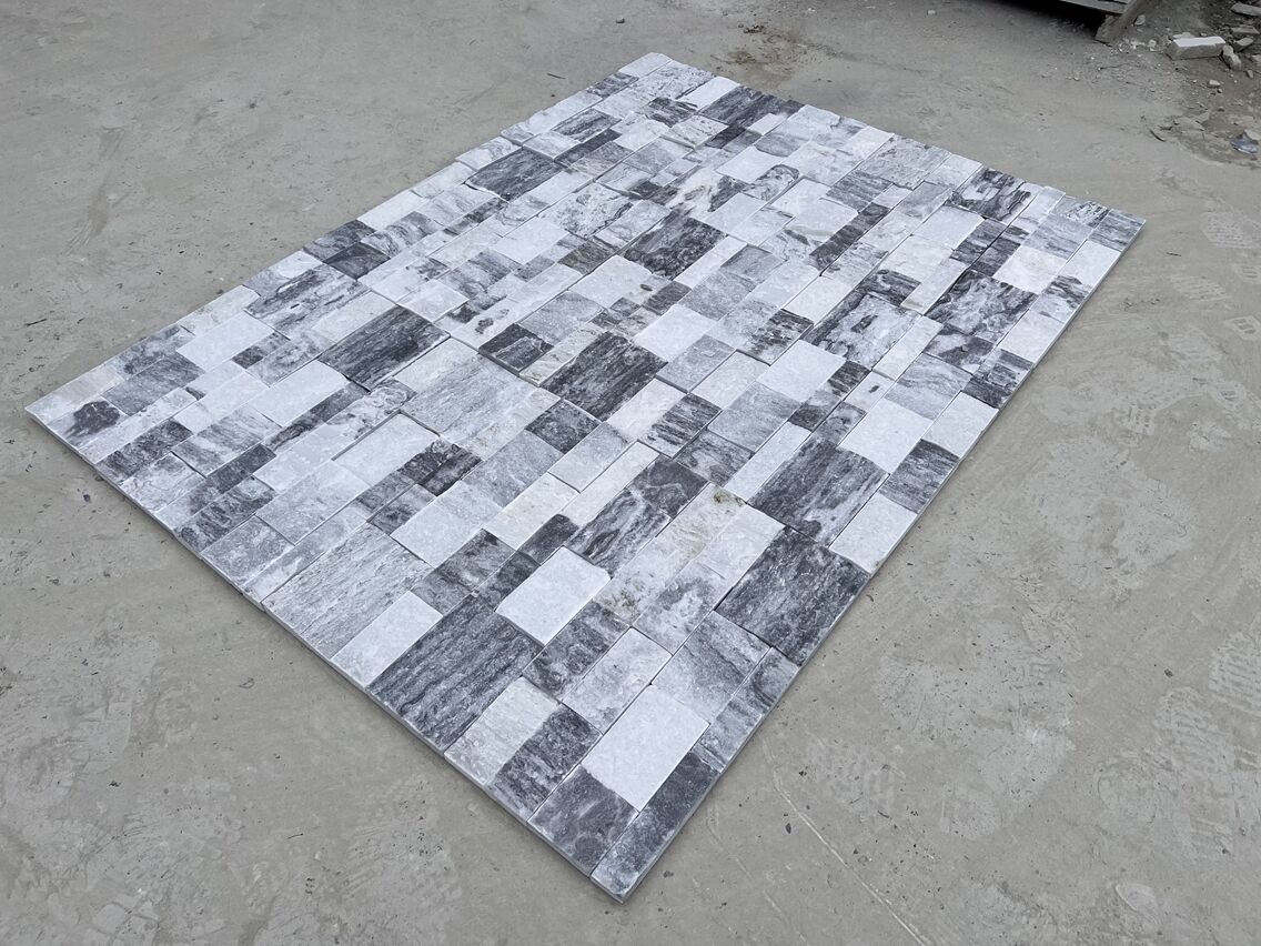 Transform your vertical surfaces with the cool, contemporary aesthetic of Alaska Gray Ledger Panel Marble Wall Tiles. These panels feature a stunning mosaic of natural marble strips, showcasing a sophisticated palette of soft grays, icy whites, and subtle pewter tones. The split-face finish provides a rugged, three-dimensional texture that creates a captivating play of light and shadow, making it a perfect choice for dramatic accent walls, fireplace surrounds, or exterior facades.
