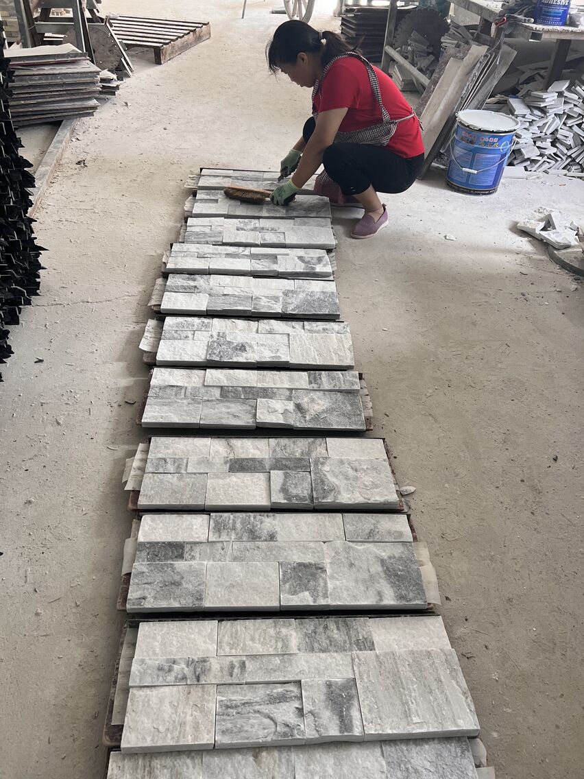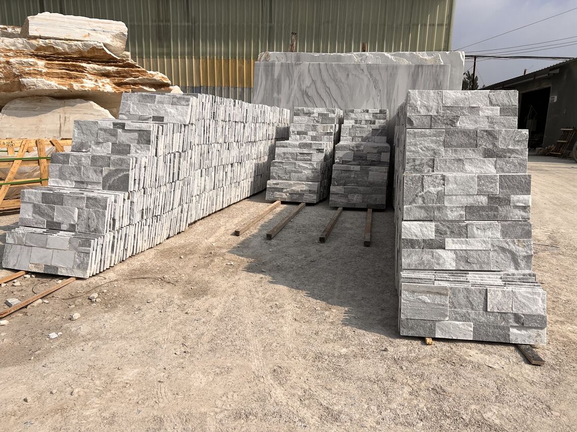 Designed for both beauty and efficiency, these "L" shaped panels allow for seamless interlocking installation, hiding joints for a professional, continuous stone look. Whether used to add an earthy touch to a modern living room or to enhance the curb appeal of an outdoor kitchen, Alaska Gray Marble offers a durable, weather-resistant solution that exudes refined luxury.(Lemon)