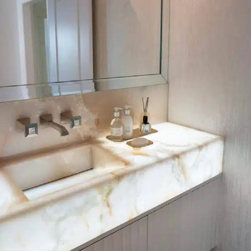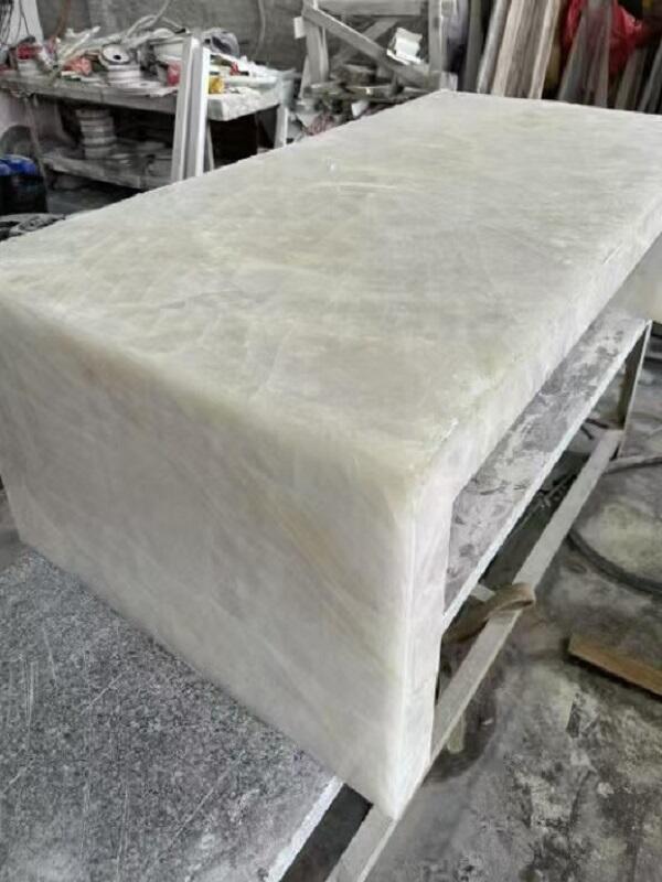 The stone is known for its translucent properties, which allow light to pass through it. This quality is highly prized for backlit applications, which can make it glow and reveal intricate details.(Ada)