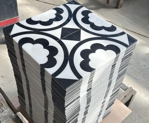 Black and White Onyx Marble Waterjet Tiles combine the elegance of black and white marble with intricate waterjet cutting, creating a bold, timeless design. Perfect for adding contrast and sophistication to floors, walls, and backsplashes in any space.(Sophia)