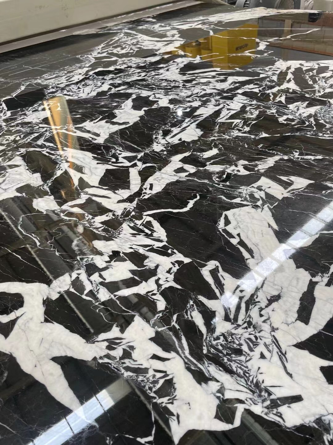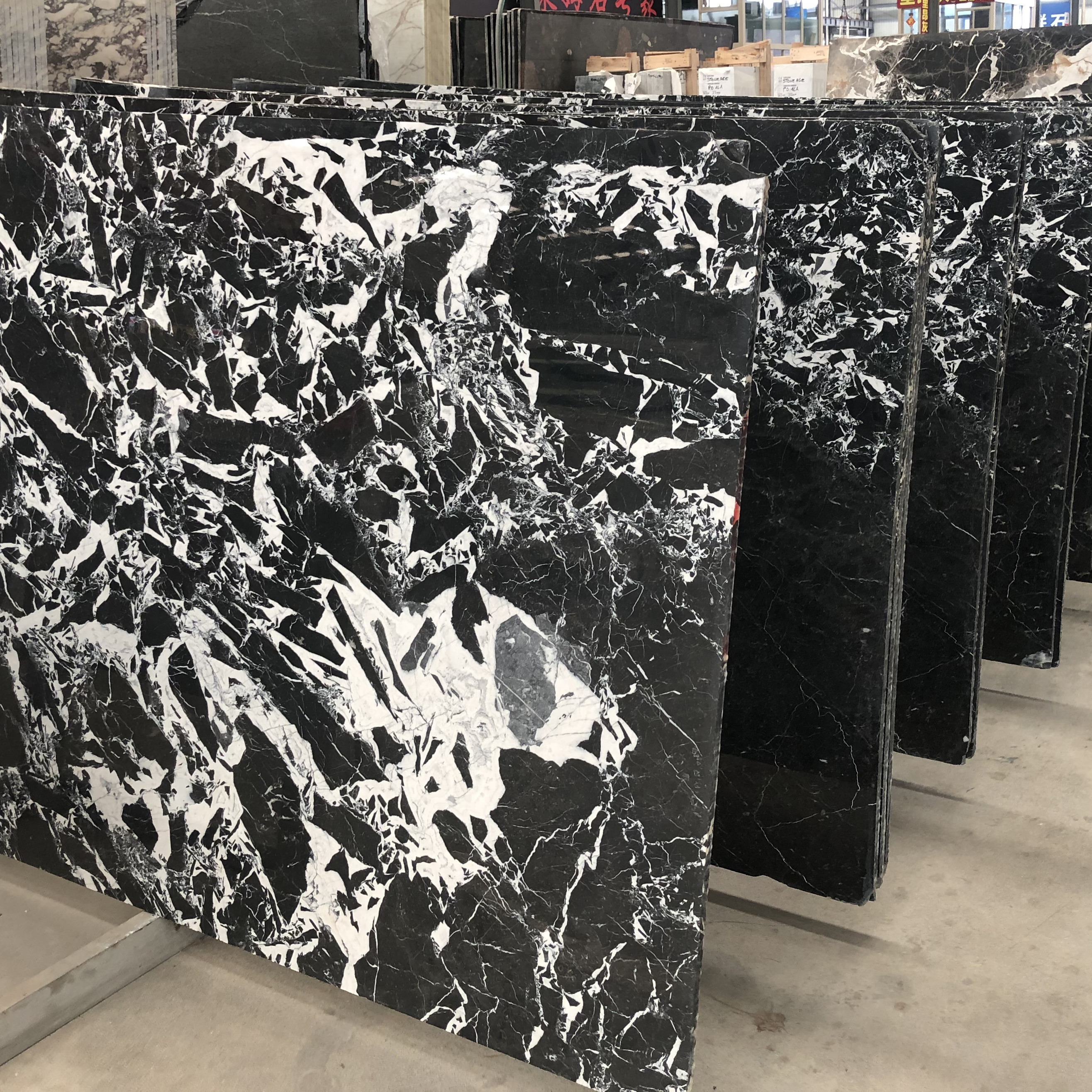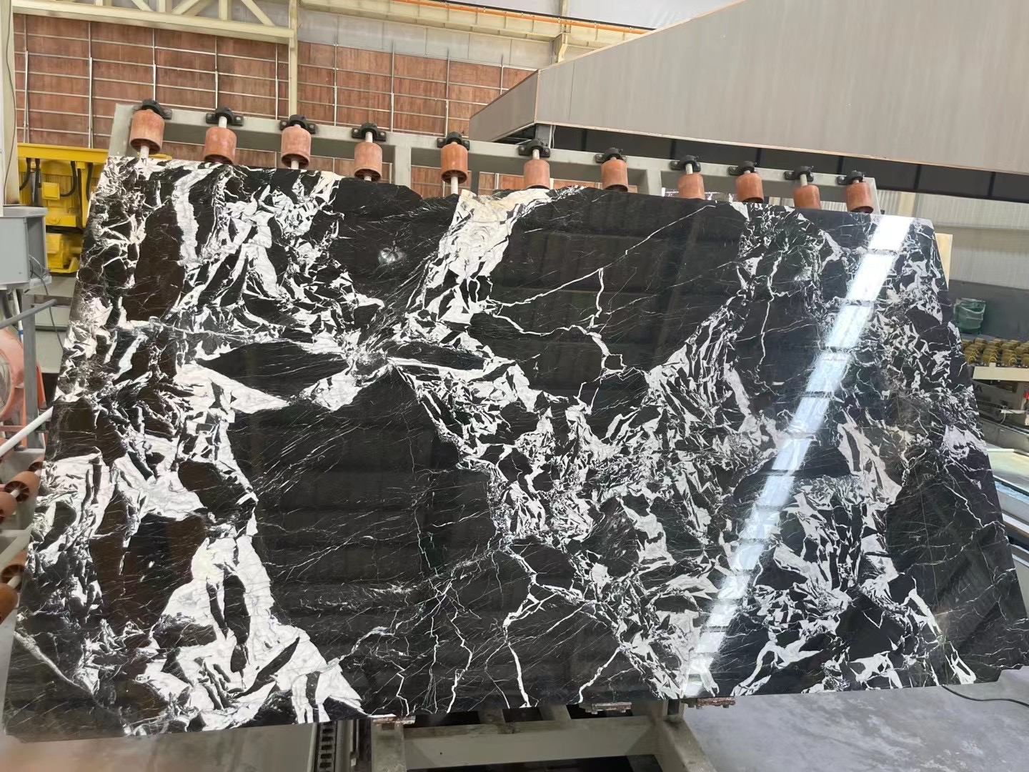 Napoleon Black Marble from France is an exquisite natural stone, renowned for its deep, pure black background elegantly veined with delicate silver-white streaks. These flowing, interconnected patterns create a sense of infinite continuity, allowing seamless horizontal and vertical splicing for a harmoniously extended design. The dynamic, wave-like movement of its veining evokes a sense of grandeur, resembling the powerful sweep of ocean waves—a captivating visual spectacle that adds timeless sophistication to any space.