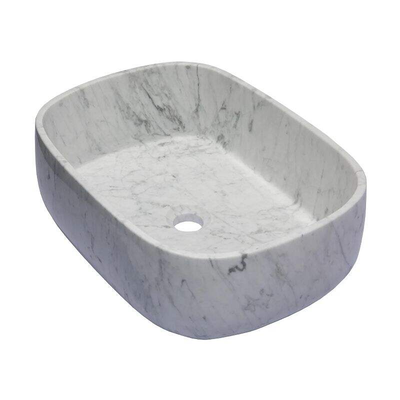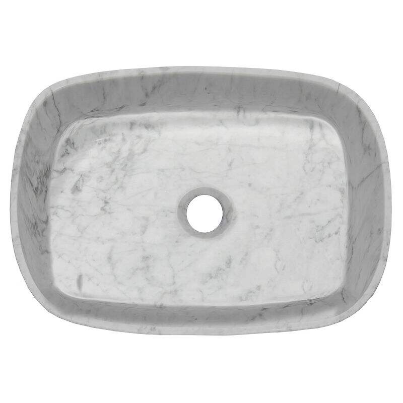 The simple design and rounded or square shape of the Eden Bath Rounded Rectangular Vessel Sink in Carrara Marble are perfect for any style home. The rectangular shape is further softened by its rounded sides. It is made from natural Carrara Marble, in a polished finish. We recommend that you also purchase a drain with your stone sink in the same finish of your faucet.