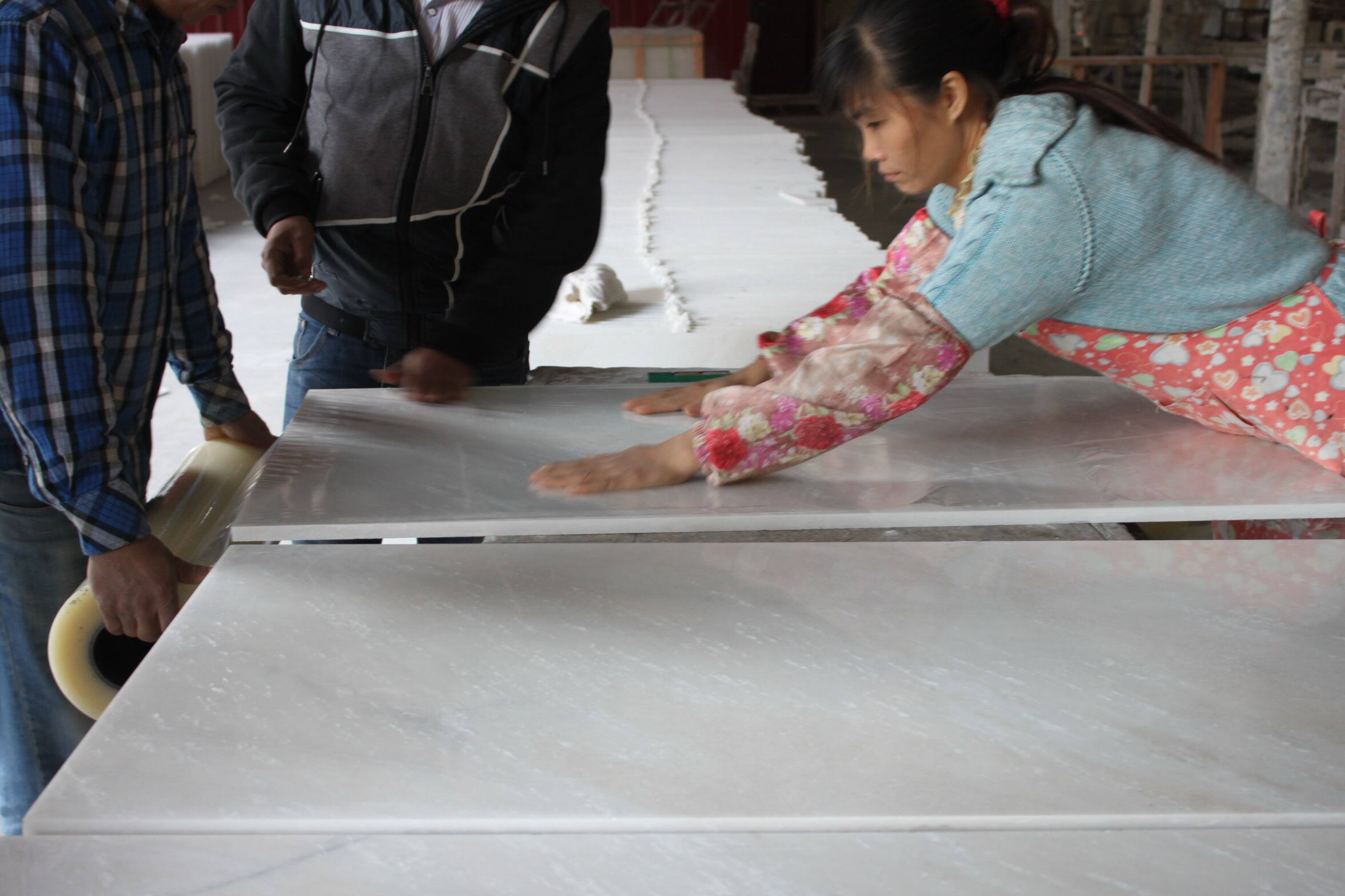 Strong seaworthy fumigated wooden bundle. 13 to 15 pieces of slabs per bundle Tiles are packed with Plywood crates or Fumigated crates. |