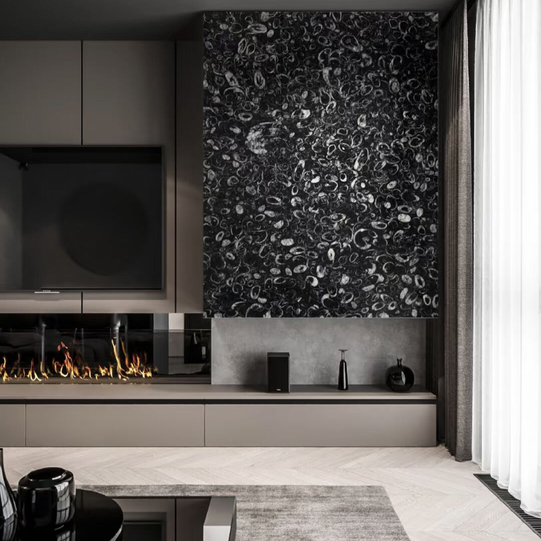 Fossil black marble is a striking natural stone quarried in China and its features a deep black base adorned with intricate white fossilized shell patterns which formed over 440 million years. It is an luxury material choice for high-end architectural projects, Specially its unique aesthetic enhances indoor/outdoor wall spaces such as lobbies, hotels, airports and customized countertops. Each slab showcases one-of-a-kind fossil imprints and blending timeless elegance with durability. Resistant to wear and easy to maintain during using, it is a premium choice for wall cladding, flooring and decorative accents. Elevate your designs with this rare geological treasure, celebrated for its historical significance and modern versatility. Contact us if you like fossil black marble.