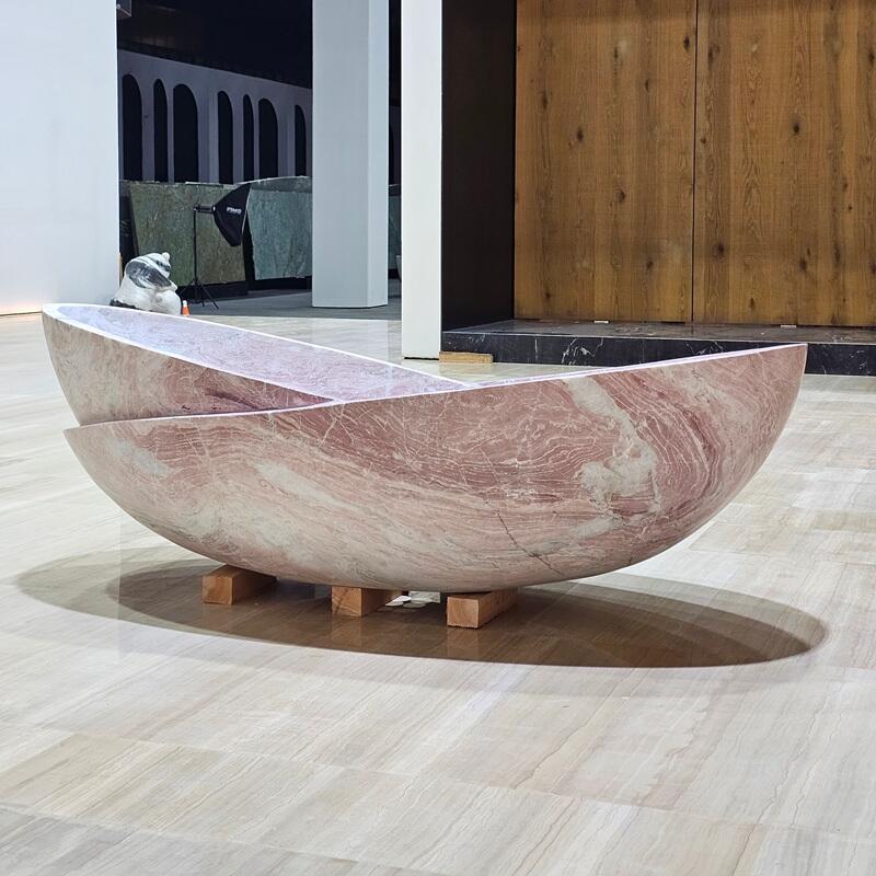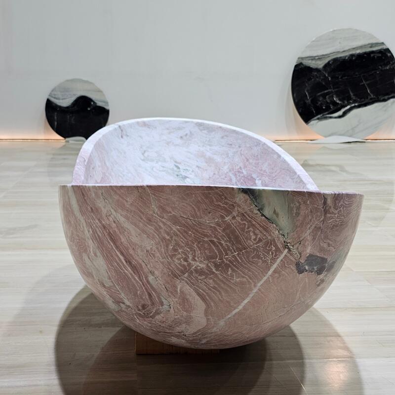 Luxury Pink Onyx Marble Bathtub is a breathtaking centerpiece destined to elevate any luxury bathroom. Meticulously sculpted from rare pink onyx, this tub command attention with both its scale and artistry. Each piece showcases nature's unique touch, with delicate veining and subtle color variations that ensure no two bathtubs are alike—transforming your bathroom into a personal spa-like sanctuary.