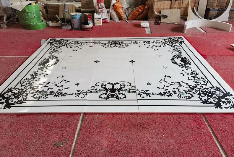 Italy Royal Botticino marble medallion are made by cutting natural stone slabs with a CNC high-power waterjet machine.