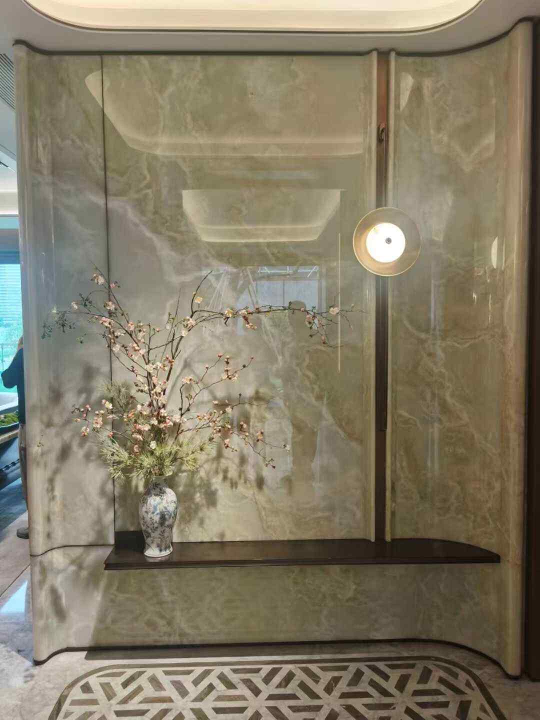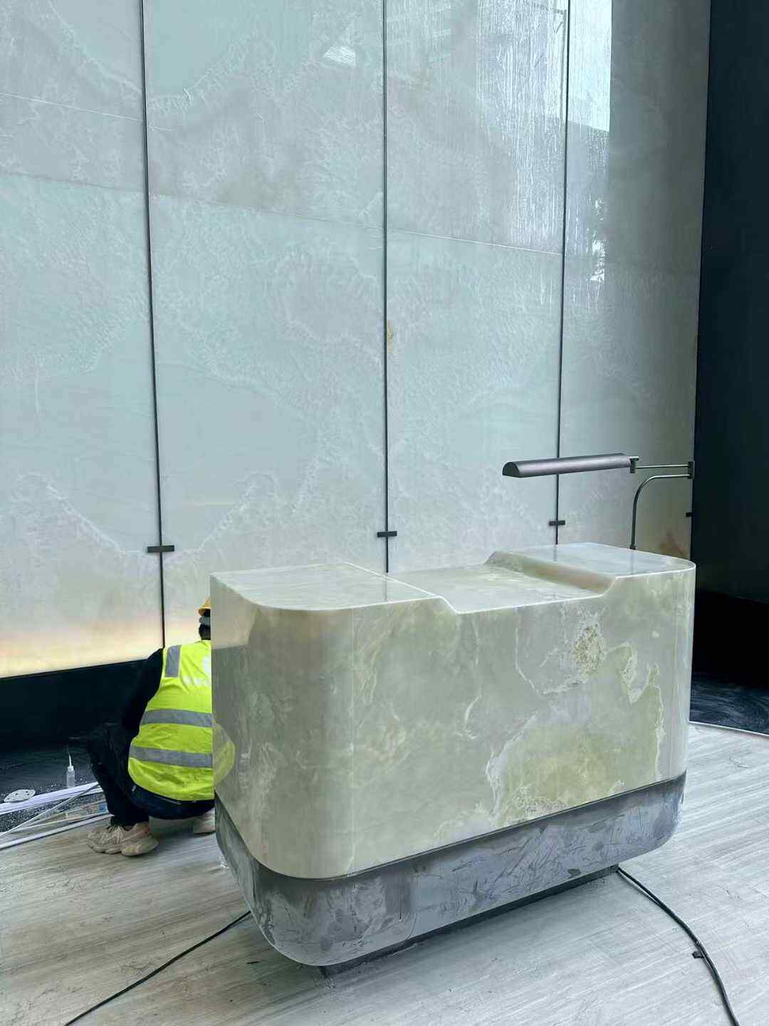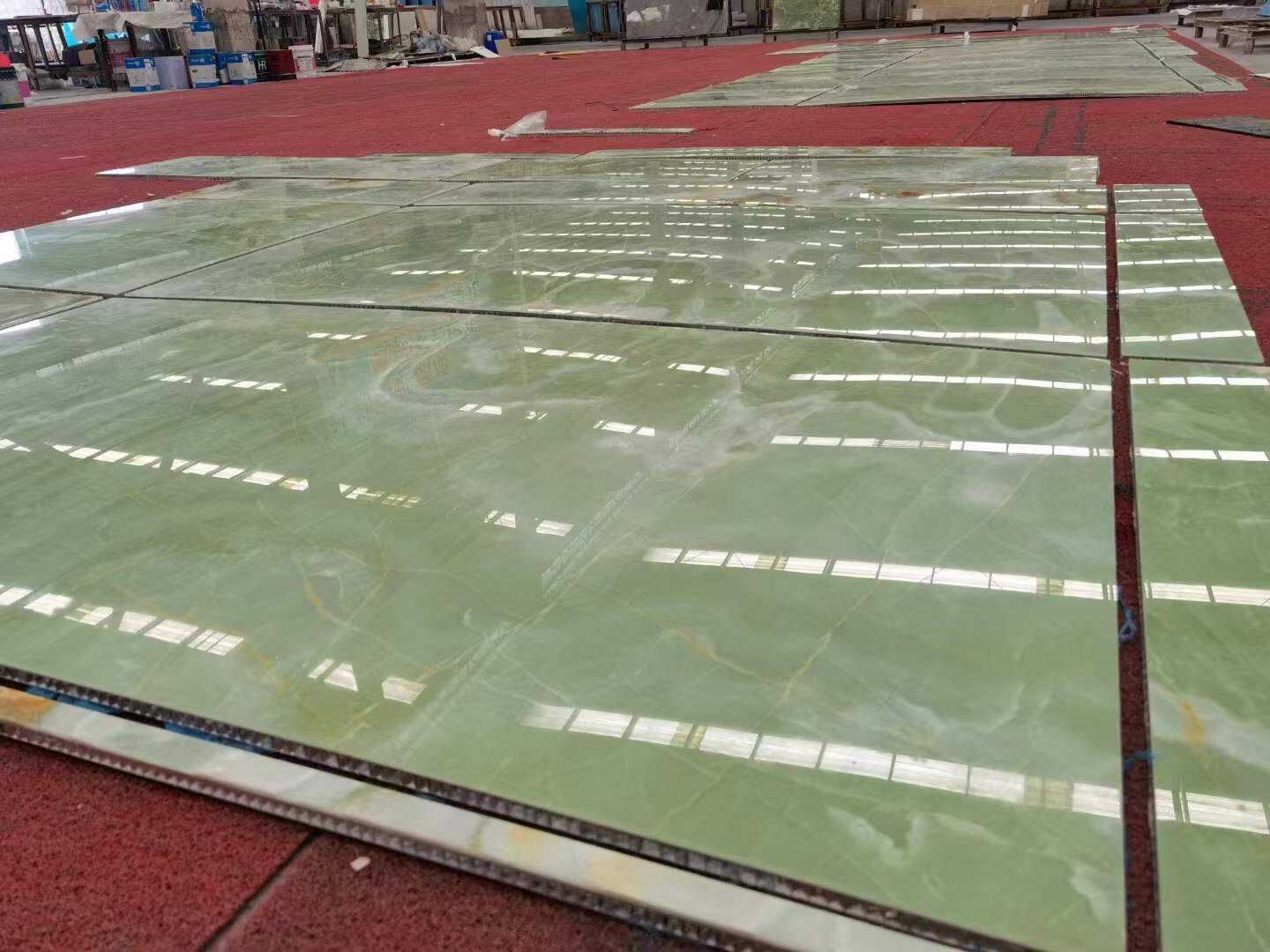 Natural Light Green Onyx Composite Slab With Alu-honeycomb Panel |