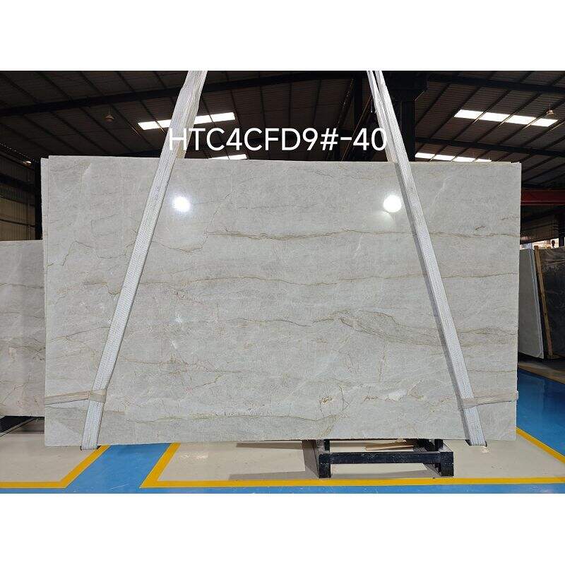 Taj Mahal Quartzite features a soft white background and subtle gold veins. All natural quartzite is more durable than granite,and is known for its wispy and dramatic veins like marble. Use this elegant natural stone to create beautiful quartzite countertops, waterfall islands, floors, and accent walls throughout the home and commercial properties. Slabs are available in both brushed and polished finishes.
