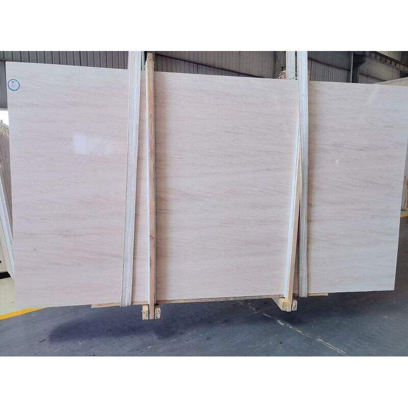 Moca cream limestone in beige color, It has a uniform background composed by a combination of fine, medium and coarse grains with brownish fossils aligned which provide the stone an aspect of parallel veining when Vein Cut.