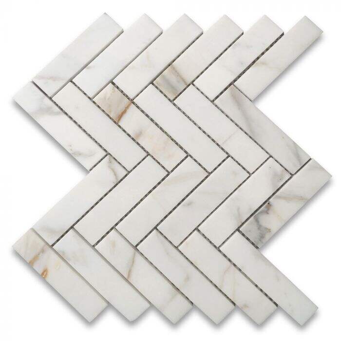 Natural Calacatta Gold White Marble Stone Herringbone Mosaic Tile Polishd Honed Finish |