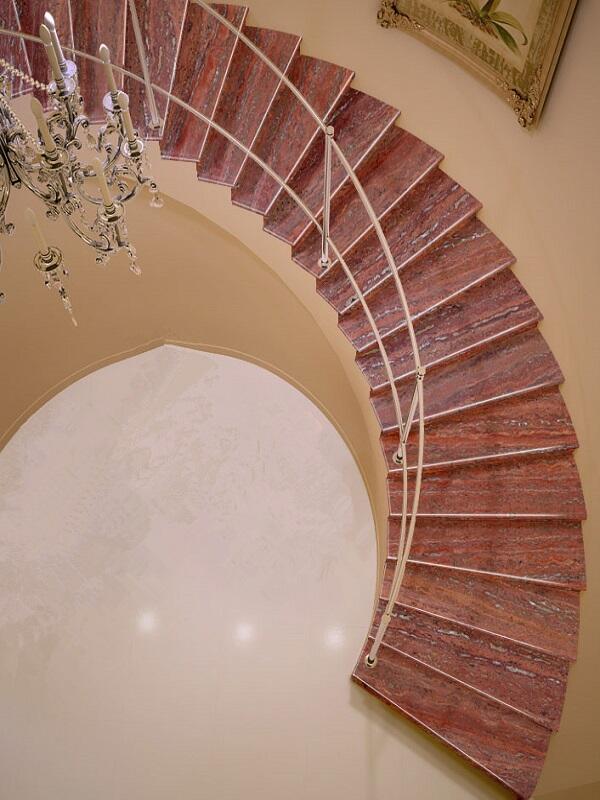 Red Travertine is a type of sedimentary rock that forms from mineral-rich natural springs. Its deep red and terracotta shades are a result of iron content within the stone. Each slab showcases unique veins and organic patterns, ensuring that no two pieces are alike, adding a natural artistic touch to any setting.