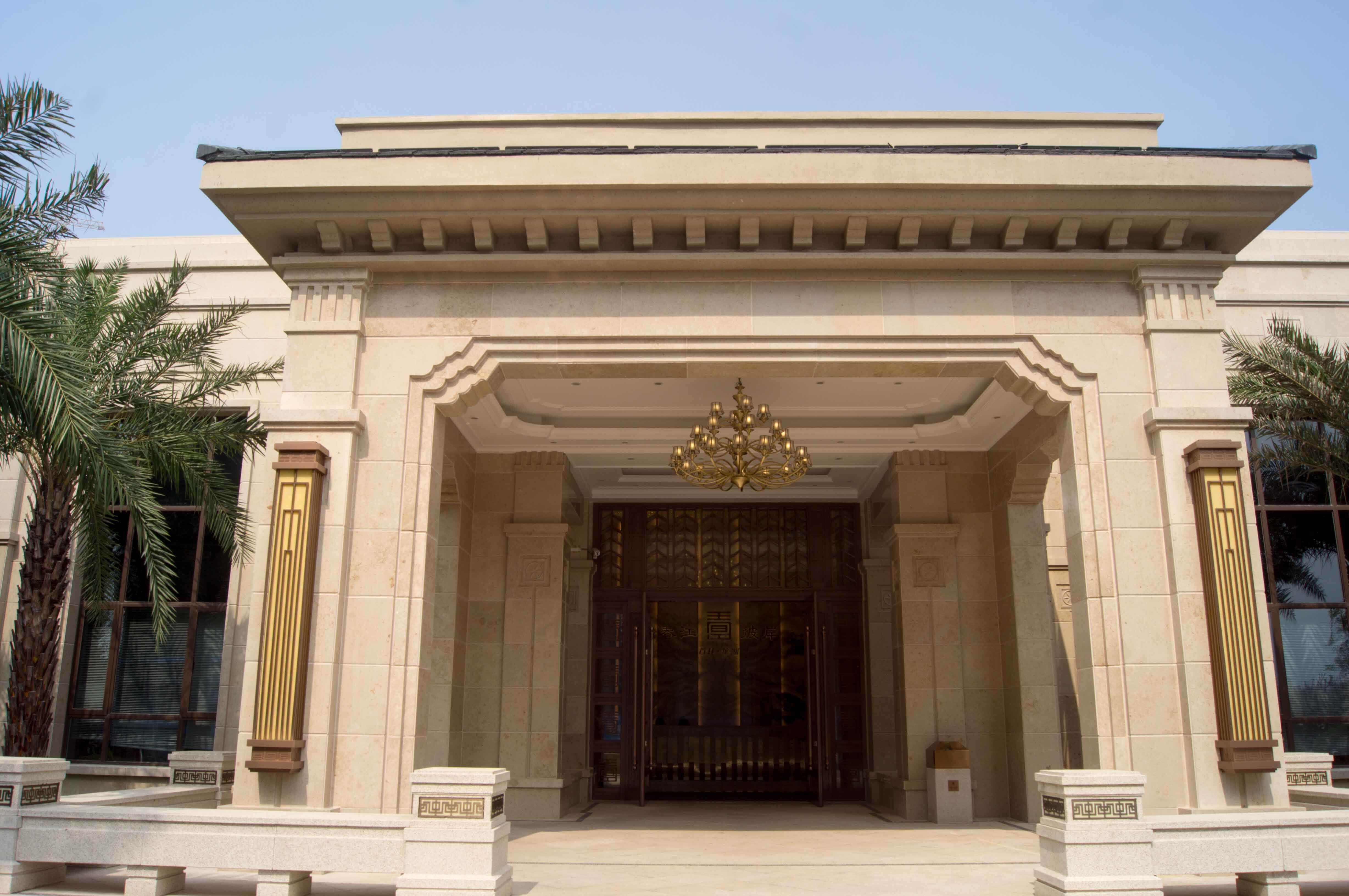 Germany Jura Beige Limestone was stunning by Slightly Beige Color,often give people the warm, cream or beige tone, which provides the classic and elegant aesthetic. The surface of the stone seems to be smooth and uniform, suggesting a polished or honed finish that highlights the material's clean lines. This type of high-quality stone contributes to the building's neoclassical grandeur, giving it a sense of timelessness and durability.