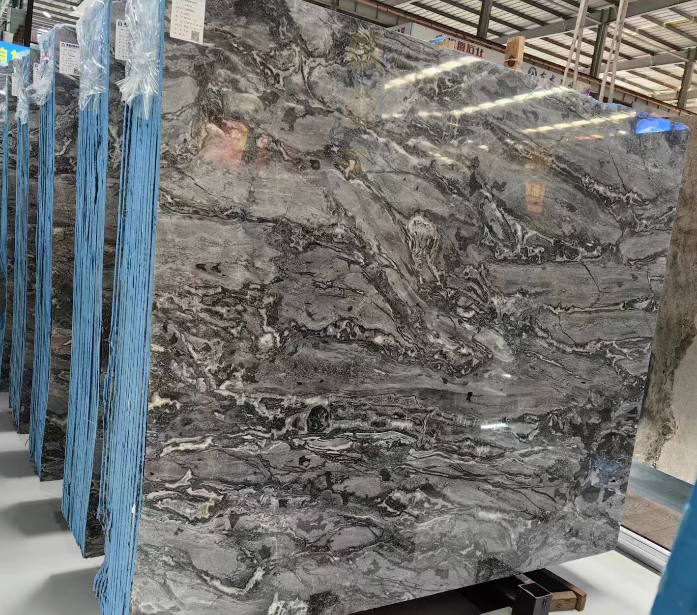 Spray grey black marble, seawave grey black marble, is a distinctive natural stone that’s known for its captivating combination of grey and black wave veins background shades. This marble exhibits a visually striking appearance characterized by darker and lighter features, creating a dynamic and elegant aesthetic. The veins that run through the marble add depth and texture, enhancing the overall appeal of the stone.