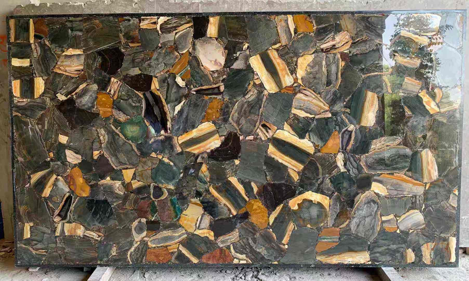 Jamaica-plattor har flera färger: blå, grön och rödbrun är de främsta färgerna. Dessa plattor tillverkas genom att limma ihop många mindre ädelstensplattor. Resultatet blir slående stora halvädla stenskivor som kan belysas bakifrån tack vare stenarnas genomskinlighet. Detta är en mycket sällsynt, unik och lyxig produkt.
